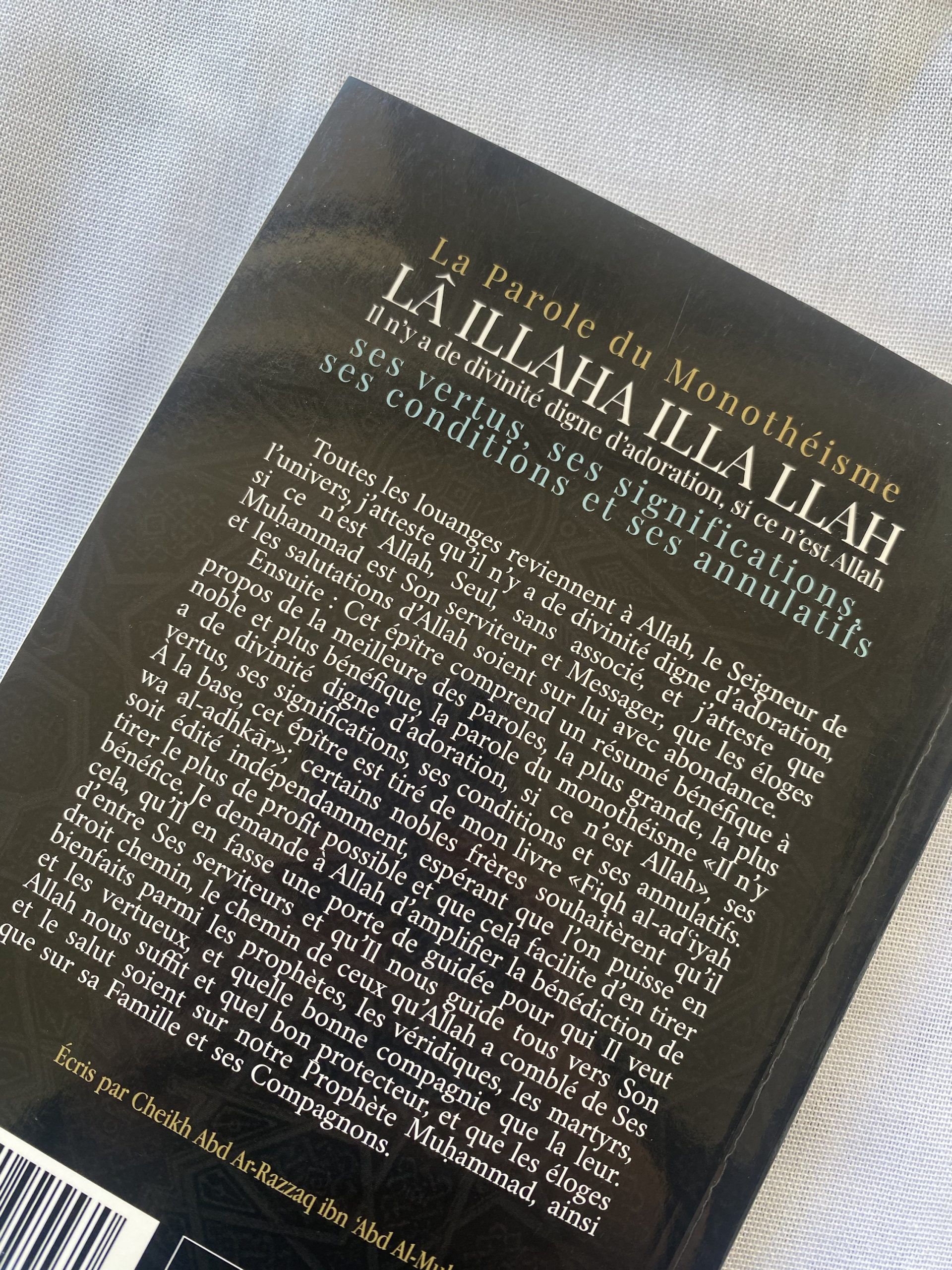 Ensuite: Cet épître comprend un résumé bénéfique à propos de la meilleure des paroles, la plus grande, la plus noble et plus bénéfique, la parole du monothéisme «if n’y a de divinité digne d’adoration, si ce n’est Allah», ses yertus, ses significations, ses conditions et ses annulatifs.